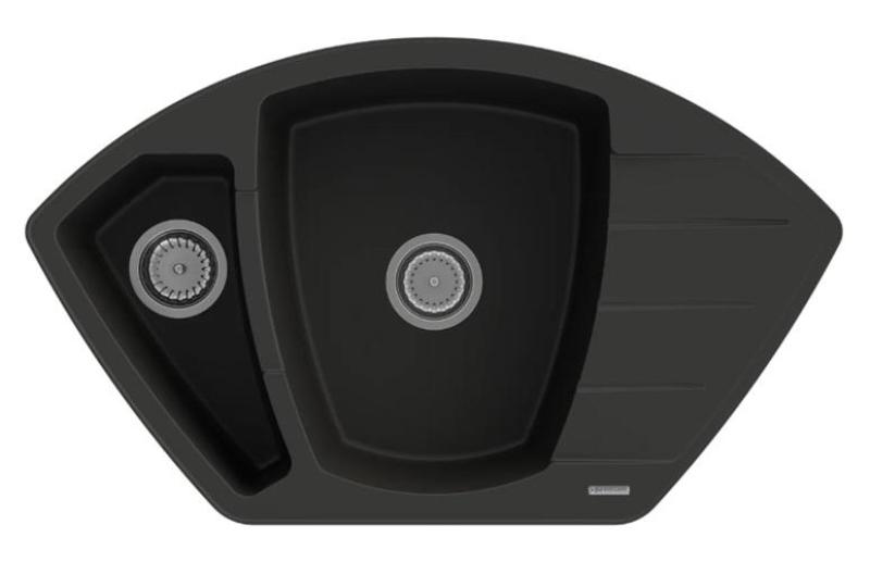 Graniteland Monte granitni črni kotni pomivalni korito za montažo 901x538mm z inox čepom 1208971413