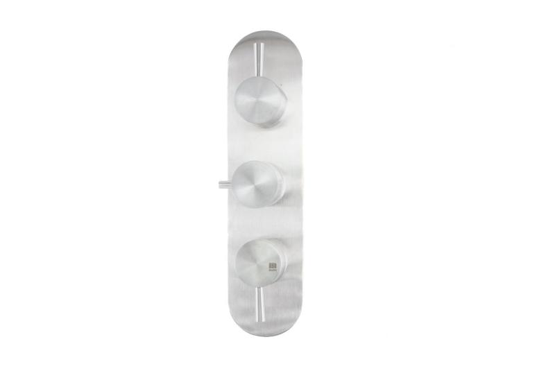 Z dvema ločenima zapornima ventiloma lahko neodvisno upravljate priključene izhode vode, kot sta glavna tuš in ročna tuš. To zagotavlja optimalno prilagodljivost in nadzor nad udobjem in porabo vode. Upravljanje poteka prek elegantnih ročajev, priložene pokrivne rozete pa zagotavljajo čisto in minimalistično zaključno obdelavo stene.